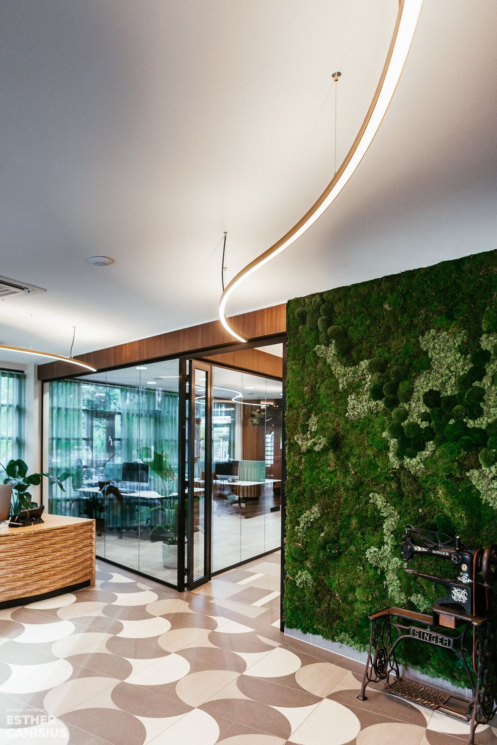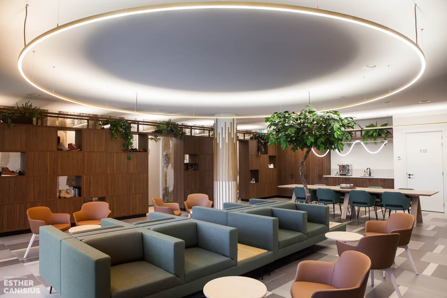 Het interieurontwerp volgt principes van Biophilic Design. Dit ontwerpprincipe gaat ervan uit dat de mens van nature het verlangen heeft om verbonden te zijn met de natuur.
