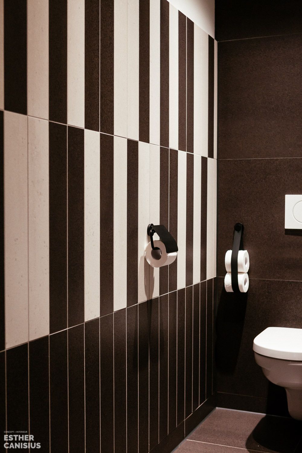 De vloerpatronen en met hout beklede pilaren geven een speelse touch. Het wandtegelpatroon in het toilet zorgt subtiel dat ook kleine mensen zichzelf in de spiegel kunnen zien.
