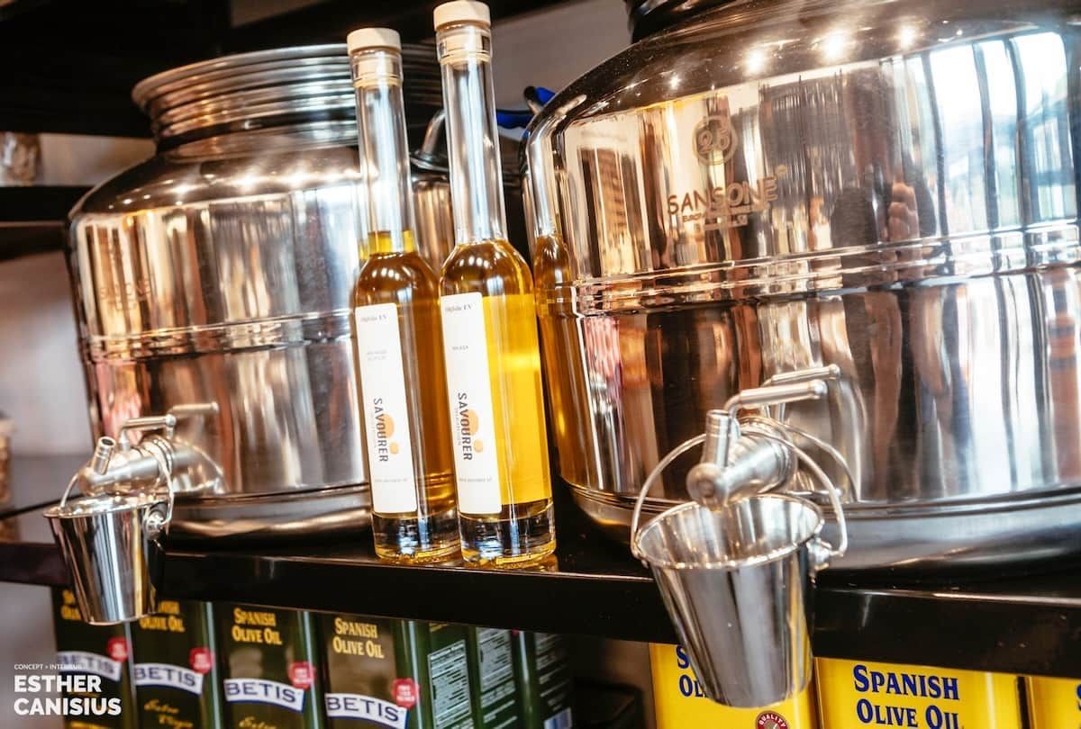 Ondernemers Johan en Monica Bénard van Savourer Delicatessen wilden geen balie of vitrine in hun nieuwe winkel. Ze wilden openheid en toegankelijkheid zodat ze samen met hun klanten door de winkel zouden kunnen lopen om hen persoonlijk te adviseren.